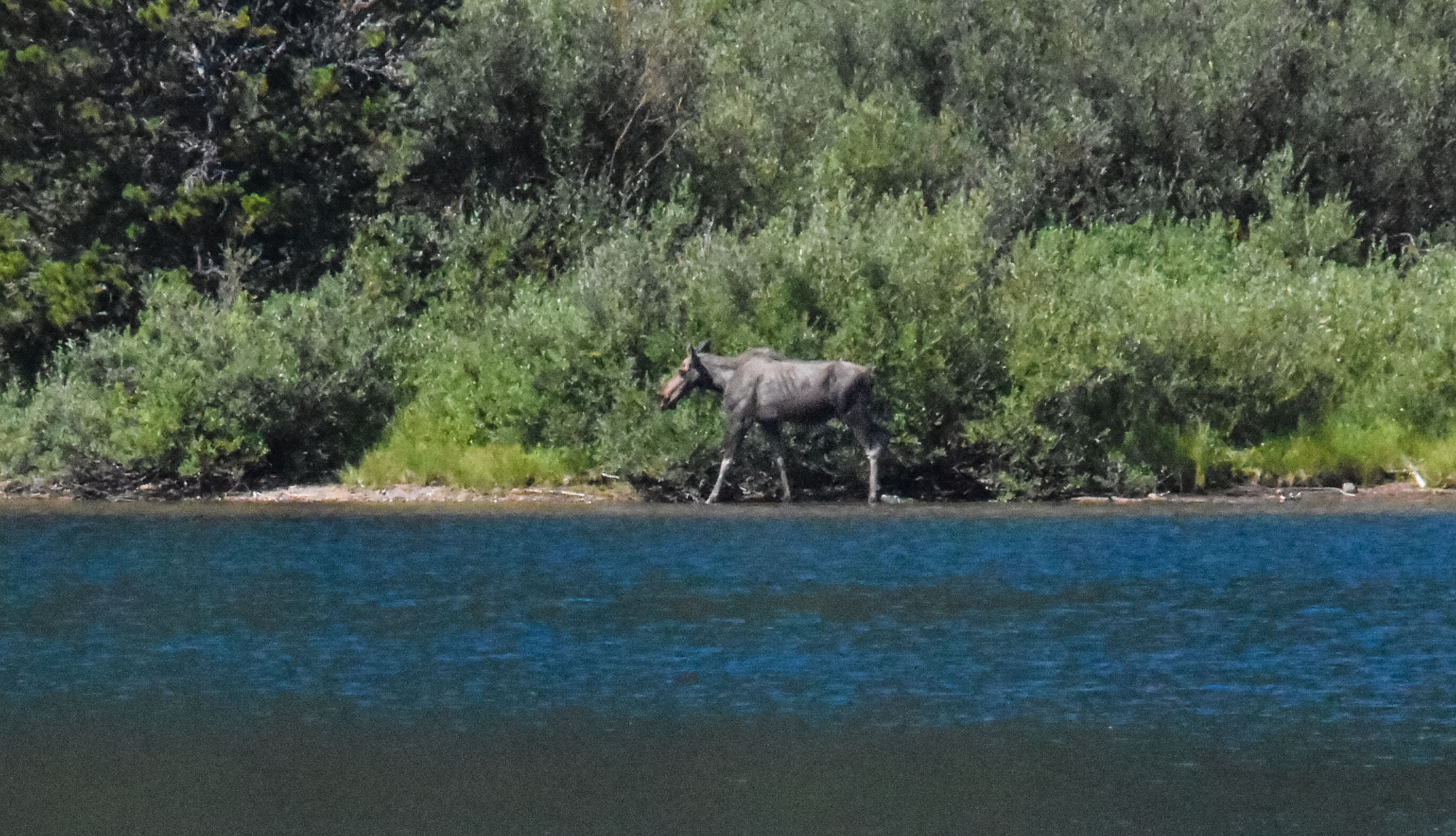 There were six adults sitting at a table next to ours, and one of the gentlemen asked me what I was photographing, to which I replied, “Nothing in particular. Just practicing.” But, I had just a few minutes before taken a few shots of a moose across the lake. He asked if he could see the photo, to which I gladly shared with him and the others with him a photo I had taken.